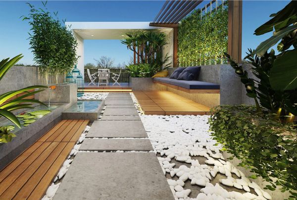 Tích hợp cây xanh trong thiết kế kiến trúc có khả năng tạo ra bầu không gian xanh, như sân vườn, khuôn viên hoặc công viên, mang lại nhiều lợi ích đáng kể. Những không gian xanh này không chỉ là nơi dành cho hoạt động giải trí và sinh hoạt của con người mà còn đóng vai trò quan trọng trong việc bảo vệ và duy trì hệ sinh thái tự nhiên.
